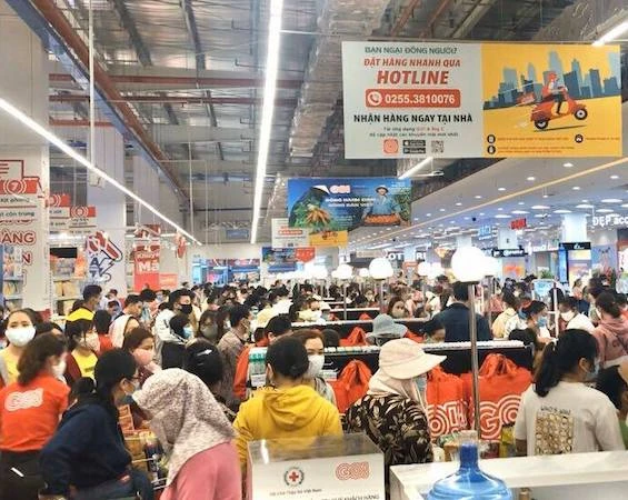 Hàng trăm người chen chúc trong siêu thị để mua sắm.