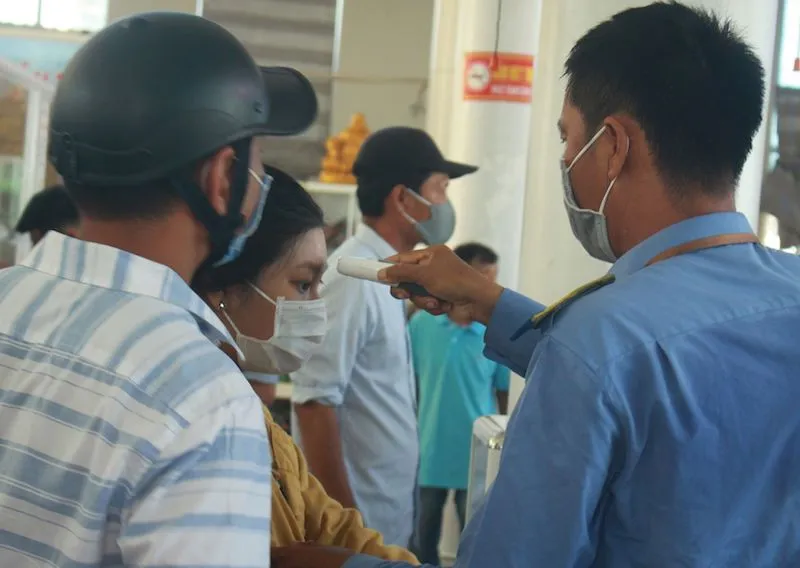 Người dân, cán bộ công tác tại đảo Lý Sơn phải khai báo y tế, kiểm tra thân nhiệt. Ảnh: CTV