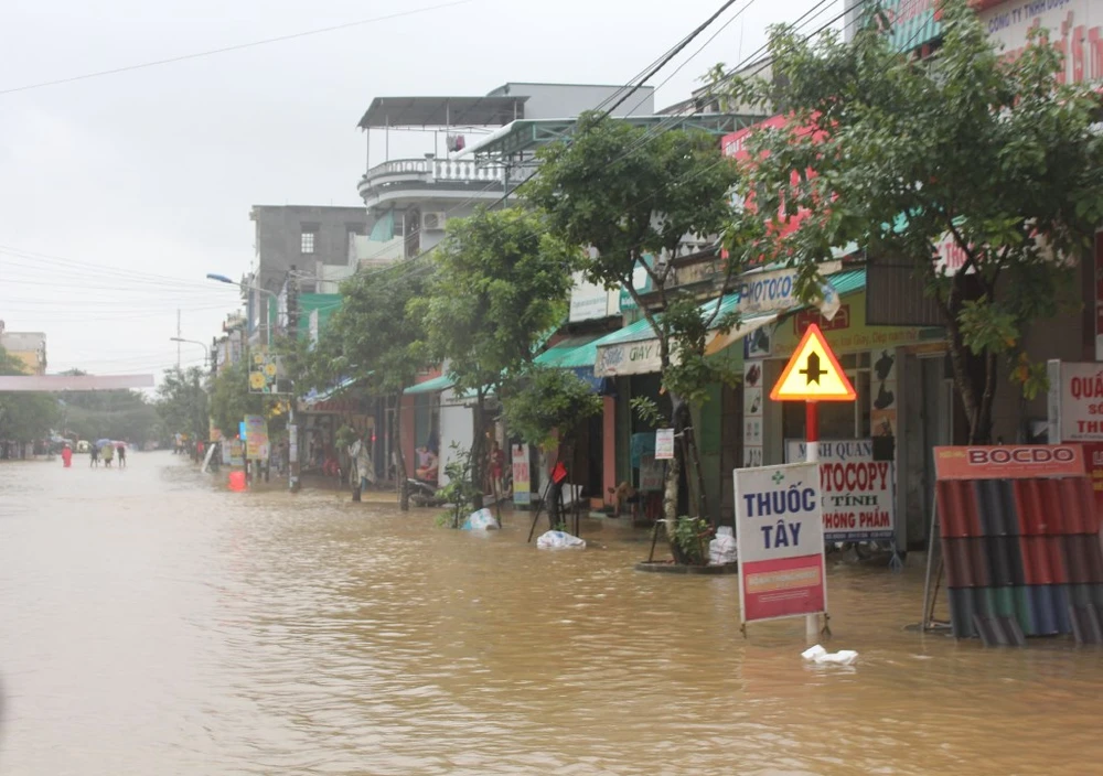 Thị trấn Chợ Chùa chiều nay lại bị ngập sâu trong lũ.