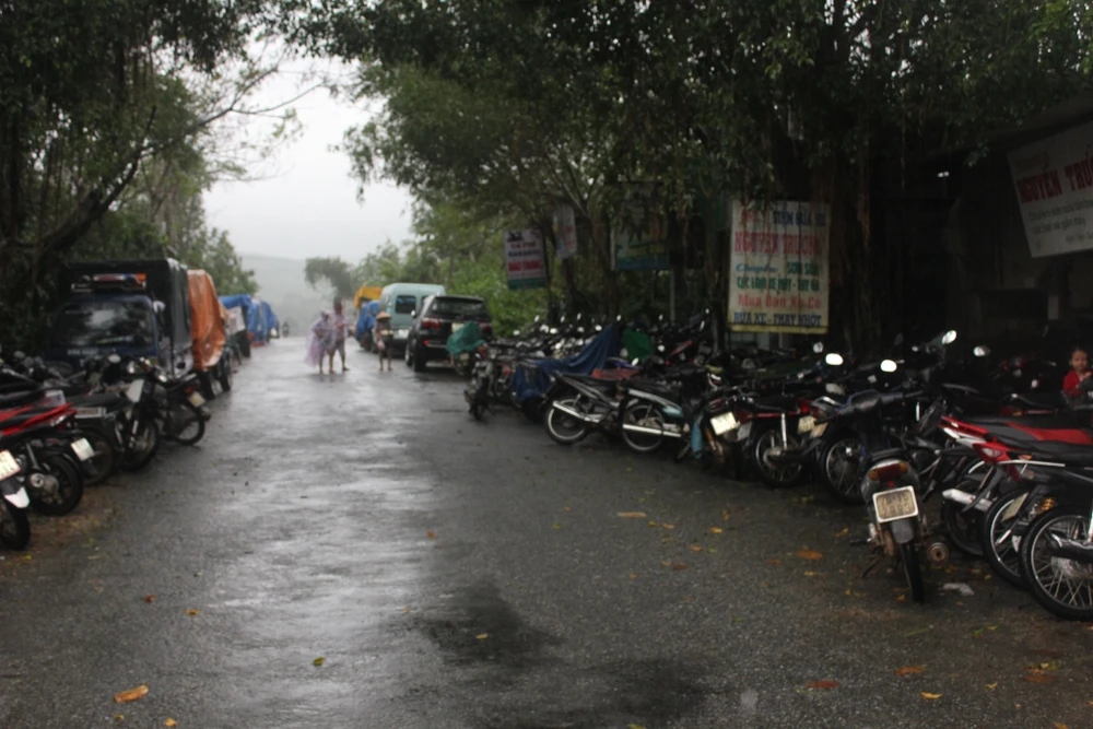 Ông Nguyễn Văn Huynh, nhà ở đầu cầu Cộng Hòa, cho hay bà con chuyển lên đây rồi lo quay về nhà dọn đồ tránh lũ. “Chẳng có chủ xe, chủ trâu bò nào ở đây cả nên mình tự giúp bà con coi tài sản” - ông cho biết.