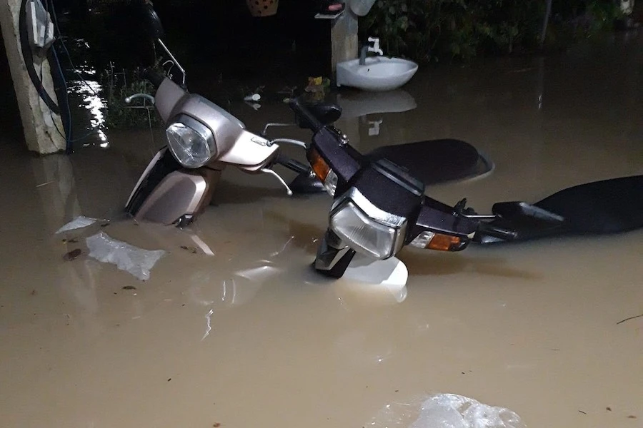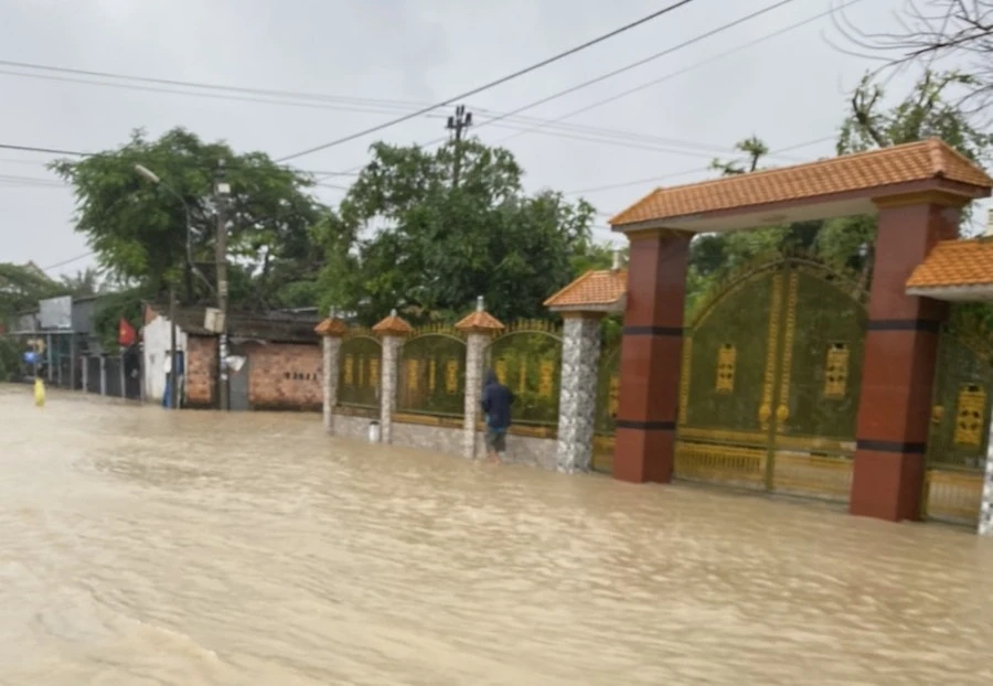 Rạng sáng 13-11, mưa lớn cùng với lượng nước từ thượng nguồn đổ về khiến sông Trà Câu dâng cao, gây ngập nhiều khu vực.