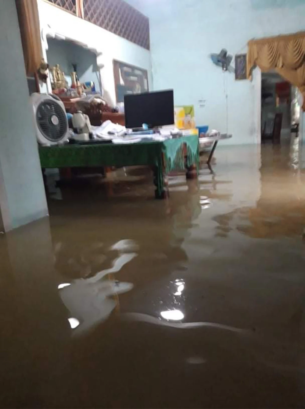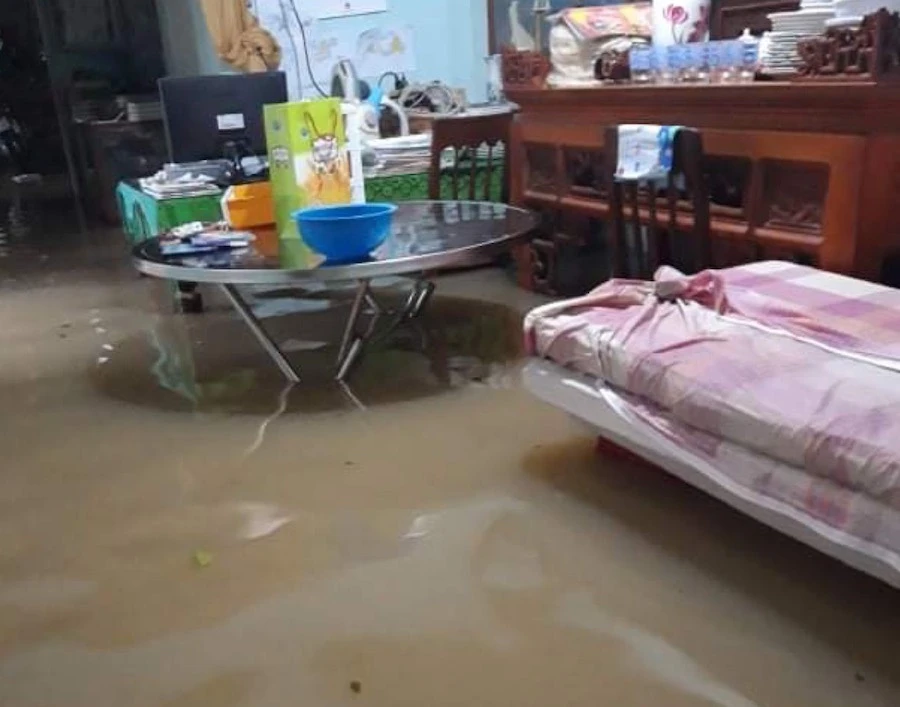Lũ dâng trong đêm, người dân kê đồ đạc lên cao.