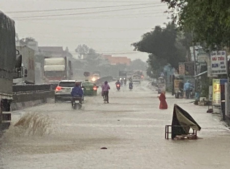 Một số đoạn trên tuyến QL1A qua thị xã Đức Phổ bị ngập.