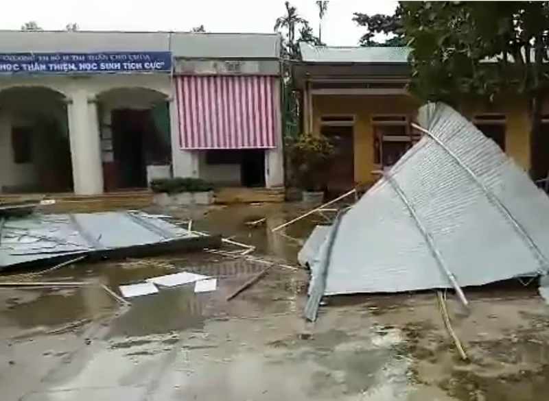 Trường học tại thị trấn Chợ Chùa, huyện Nghĩa Hành bị hư hỏng. Ảnh: TẤN VIỆT