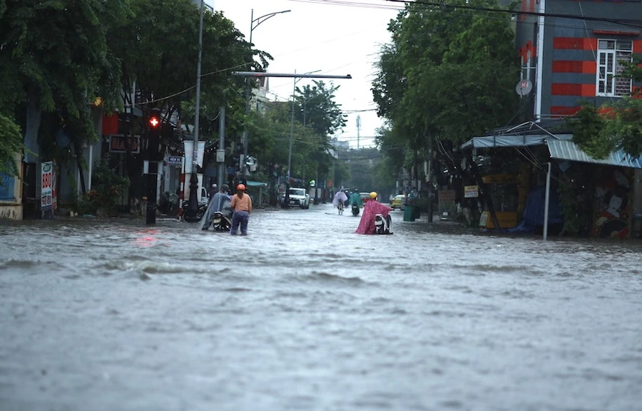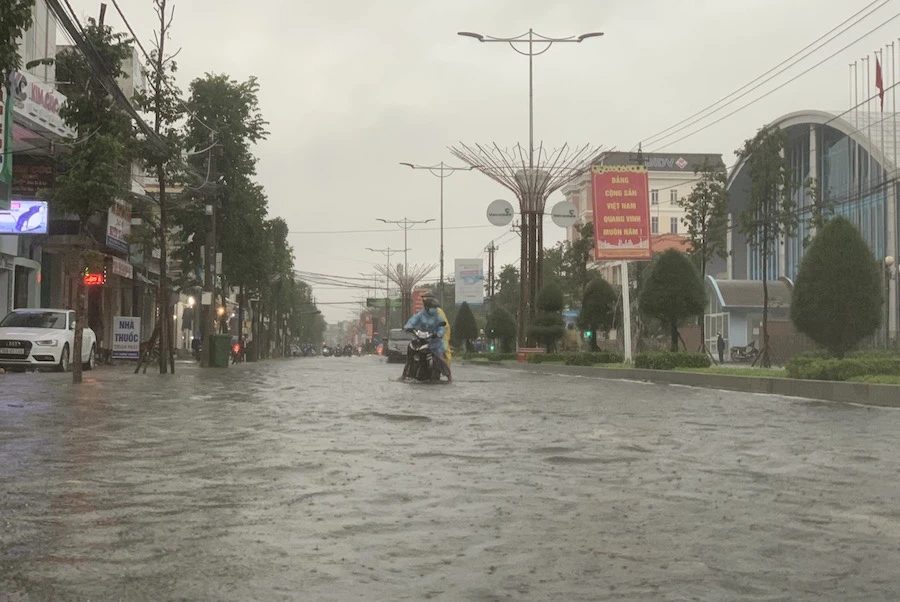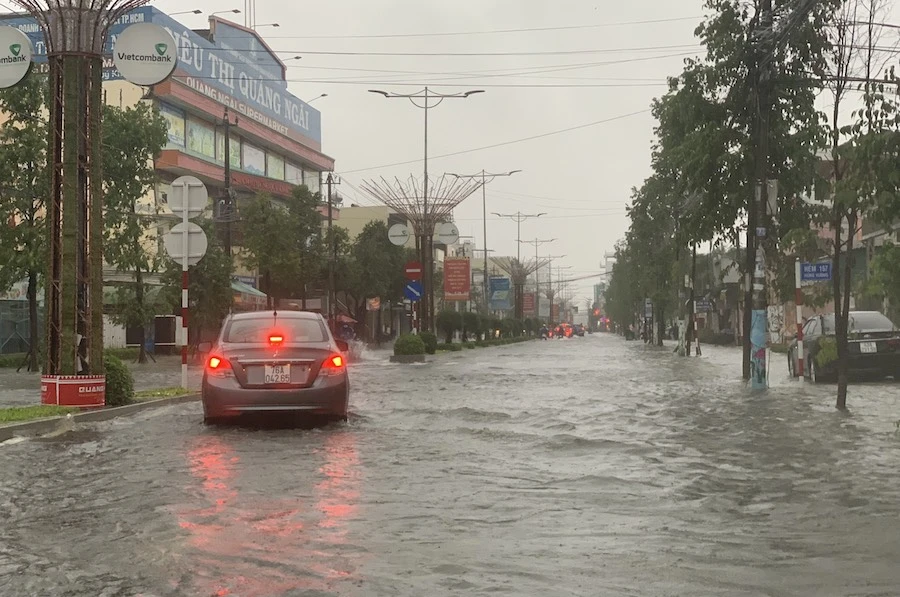Nhiều tuyến đường ở TP Quảng Ngãi bị ngập.