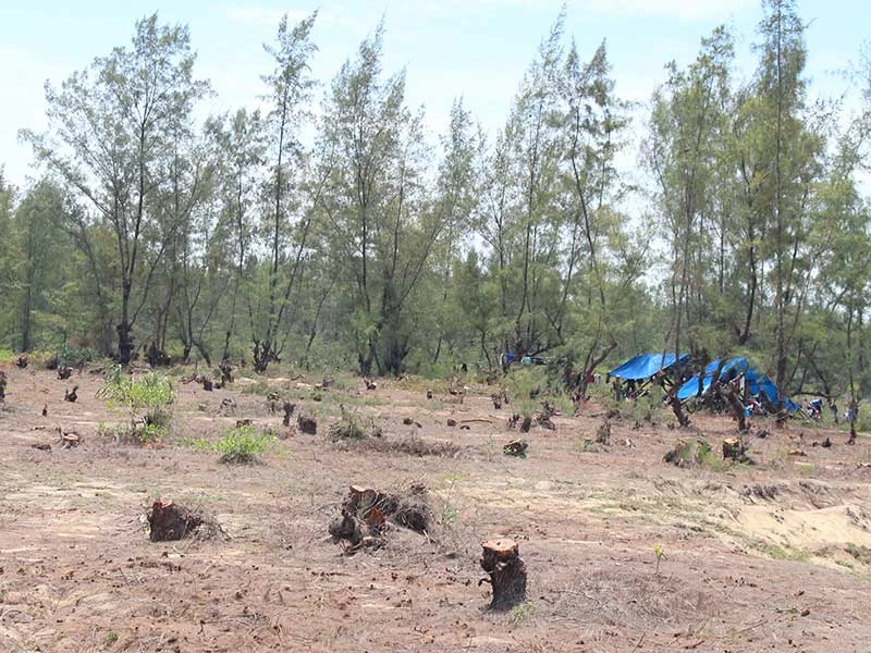Hơn 4 ha rừng dương đã bị đốn hạ để thực hiện dự án trồng rau sạch. Ảnh: HUY TRƯỜNG