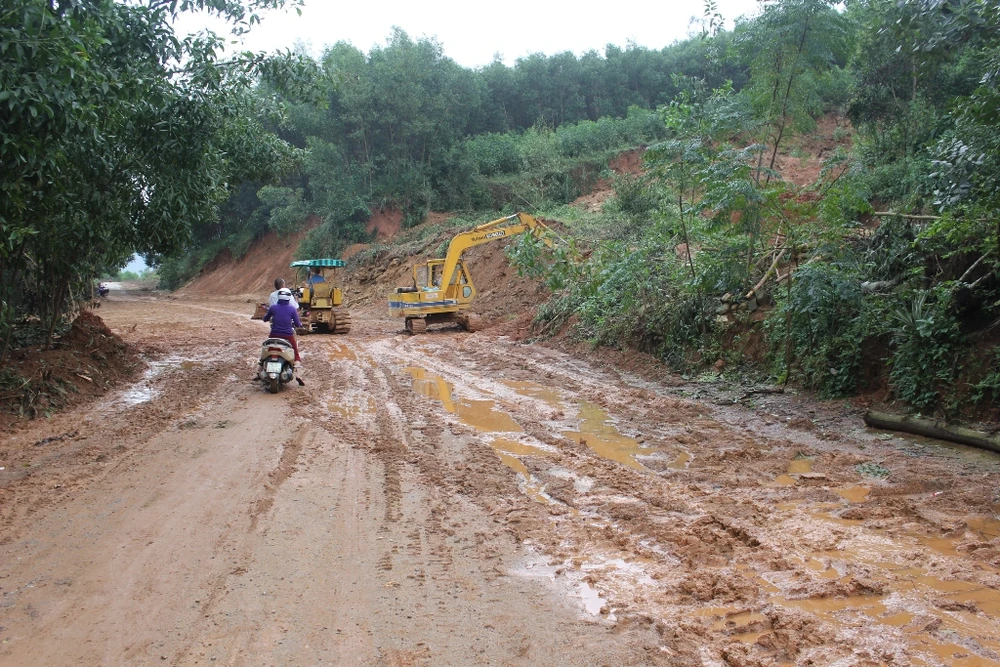 Ở các huyện miền núi cũng đã huy động phương tiện cơ giới cùng nhân dân khắc phục nạn sạt lở đất thông một số tuyến đường để dân di lại.