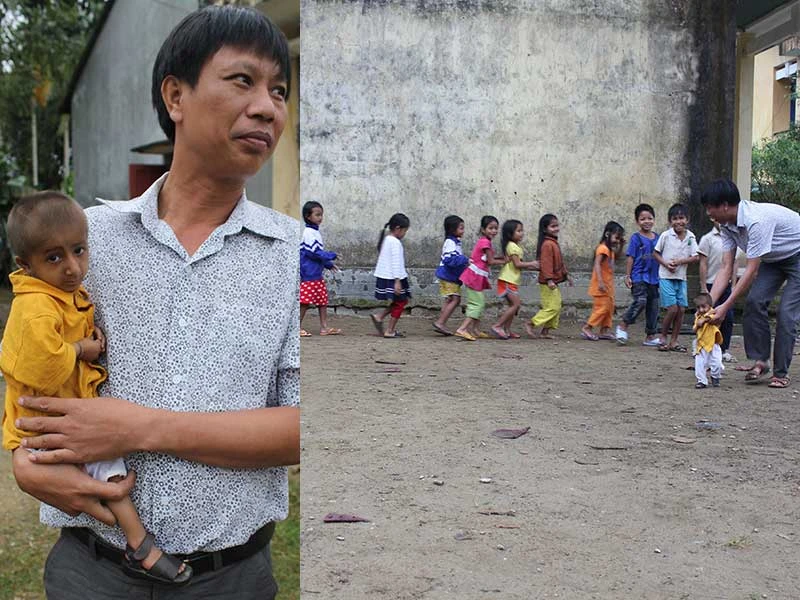 | Cưu mang học trò tám tuổi nặng 3,5 kg Tháng 3-2016, anh Đinh Văn An ở thôn Gò Da đề xuất với nhà trường cho em Đinh Văn KRễ, em bé tí hon đã tám tuổi nhưng chỉ cân nặng được 3,5 kg xuống ở nội trú để được hòa nhập với bạn bè. KRễ “hạ sơn”, được đặc cách ở với thầy Cương. “Ở trên bản cháu có mặc quần áo bao giờ đâu. Xuống dưới này tụi mình phải xuống dưới chợ huyện mua quần áo của trẻ sơ sinh về sửa lại cho cháu mặc. Ban đầu chưa quen với môi trường mới, KRễ rất thụ động, khi chuyển mùa lại bị sốt”. Những khi KRễ bệnh, thầy Cương lại thay mẹ của KRễ chăm sóc cho em. “KRễ rất thích món bánh xèo và đá banh. Bánh xèo thì dễ rồi, mình chạy xe đi mua được. Nhưng đá banh thì bàn chân tí hon chạy nhanh là ngã chỏng quèo. Nhìn thấy bạn bè cùng tuổi mang giày đá banh, KRễ thích lắm, cứ đứng xem rồi mon men lại gần sờ lên đôi giày của bạn. Thấy thương quá, tôi đã đi hỏi các tiệm nhưng chẳng có nơi nào bán giày kiểu đá banh cho trẻ sơ sinh nên đành thua” - thầy Cương tâm sự. Năm ngoái có dịp ra Hà Nội, thầy Cương lại mang KRễ theo để khám bệnh và được các bác sĩ xác định là mắc hội chứng Seckel. Non một năm ở nội trú, bây giờ hỏi chuyện, KRễ đã biết “ạ”, biết bắt tay và biết vẫy tay tạm biệt. _______________________________ Với những nỗ lực của mình, năm 2013 thầy Đặng Văn Cương đã được Thủ tướng Chính phủ tặng bằng khen và năm 2016 là một trong hai thầy giáo của tỉnh Quảng Ngãi được Bộ GD&ĐT vinh danh. Riêng Trường Tiểu học Sơn Ba 10 năm qua luôn đạt danh hiệu trường tiên tiến. |
