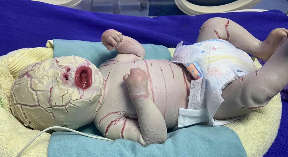 Bé được chẩn đoán mắc bệnh da vảy cá bẩm sinh (Harlerquin Ichthyosis), thể nặng nhất trong 9 thể của bệnh lý này.
