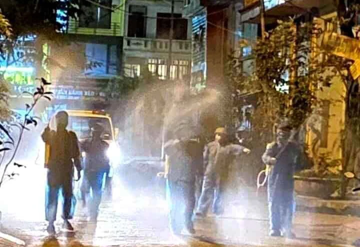 Lực lượng chức năng tiêu độc, khử trùng khu dân cư có nữ hành khách tiếp xúc bệnh nhân số 46