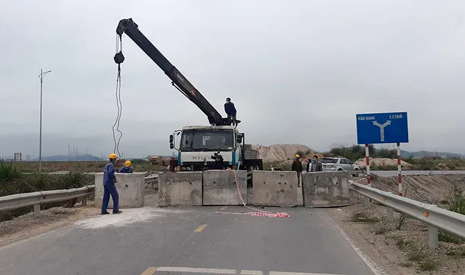 Một tuyến đường thuộc TP Hạ Long (huyện Hoành Bồ cũ) được đặt ụ bê tông chặn lại