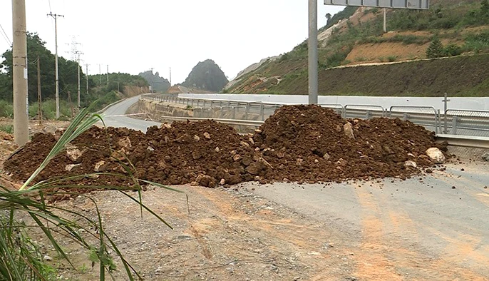 Một tuyến đường gom cao tốc Hạ Long - Vân Đồn bị đổ đất phong tỏa