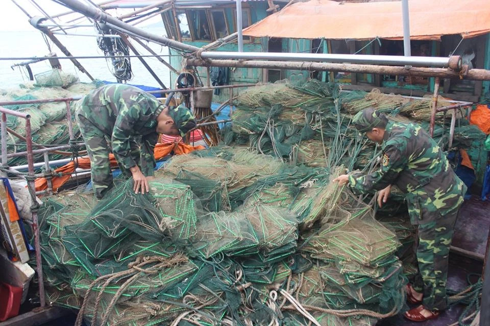Đồn Biên phòng Trà Cổ cho hay, chỉ tính từ đầu năm 2017 đến nay, đơn vị đã phát hiện, bắt giữ 18 vụ sử dụng dùng kích điện, thuốc nổ, đồ lặn và lồng bát quái để khai thác nguồn lợi thủy sản mang tính hủy diệt.
