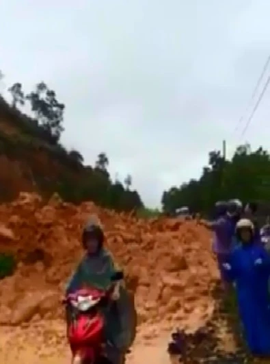 Tuy nhiên, nhiều phương tiện giao thông như xe máy vẫn cố luồn lách qua các khu vực này. Có những điểm đất lở từng mảng, người dân ở dưới chạy bộ, chạy xe tránh đất lở.