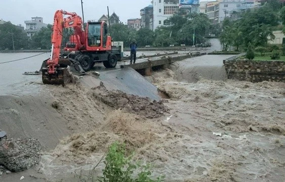 lực lượng chức năng phải phá đập tràn Sông Sinh để cứu ngập cho TP.