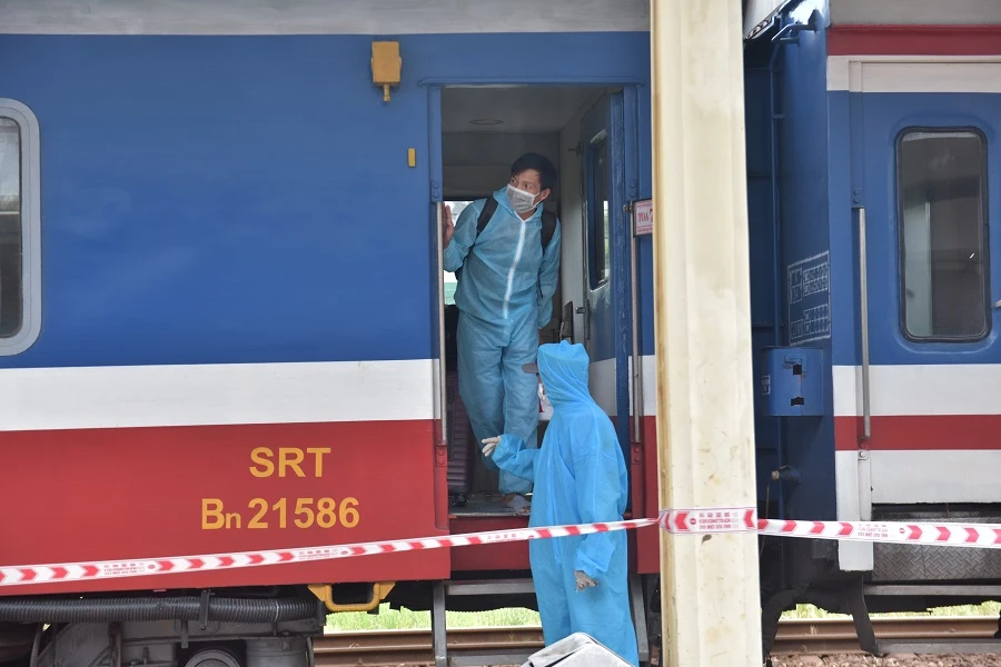 Lực lượng chức năng Quảng Trị đón người dân về quê thời điểm TP.HCM bùng dịch. Ảnh: ND