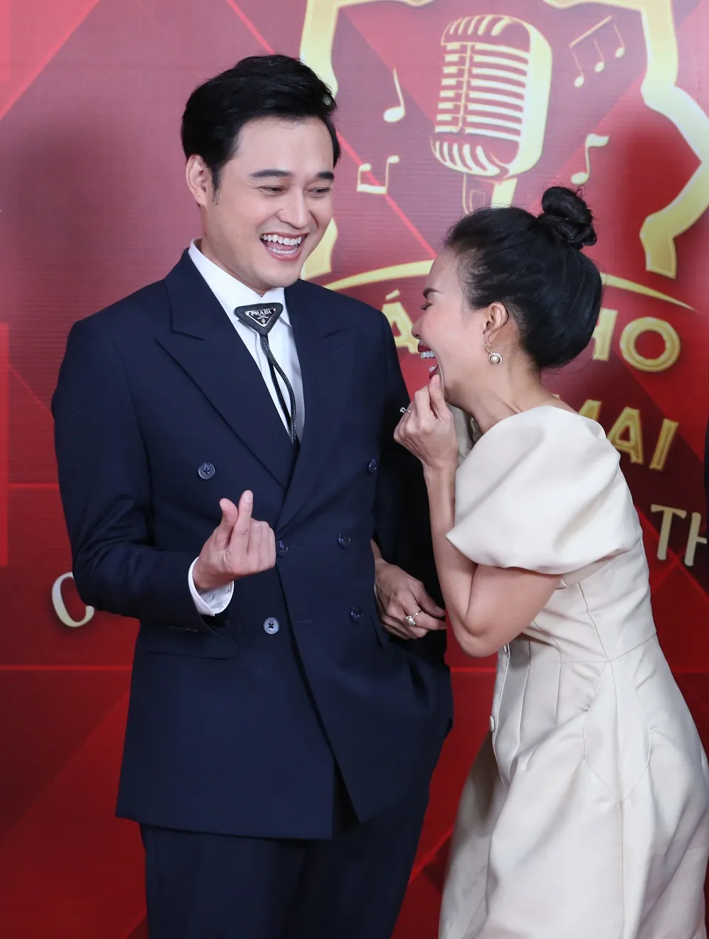 Ca sĩ Cẩm Ly hào hứng khi gặp lại Quang Vinh. Ảnh: BEE