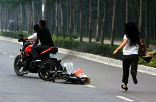 Theo cáo trạng, chiếu 7-4, Hoài chạy xe chở Thêm chạy rảo trên đường. Đến một vòng xoay trên địa bàn quận 11, Hoài ép xe cho Thêm giật túi xách của một phụ nữ. Khi phóng xe bỏ chạy, cả hai bị bắt giữ.