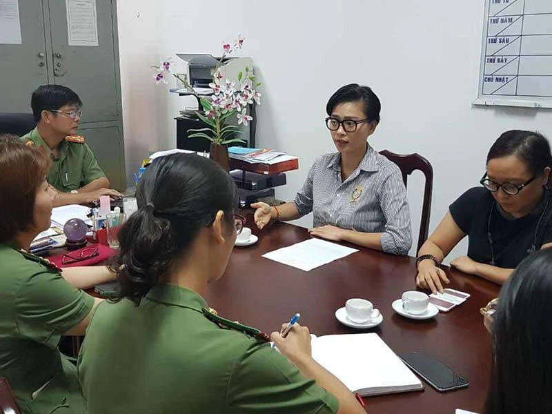 Diễn viên-nhà sản xuất Ngô Thanh Vân cùng đại diện nhà phát hành đang làm việc với Công an tỉnh Bà Rịa-Vũng Tàu. (Ảnh do nhân vật cung cấp)