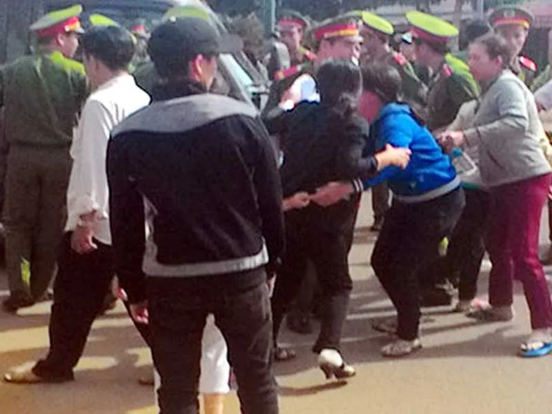 Một vụ người nhà bị cáo quậy tưng tại TAND huyện Châu Đức (Bà Rịa-Vũng Tàu). Ảnh: TK