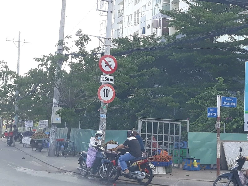 Báo Pháp Luật TP.HCM nhận được phản ánh của người dân sống tại chung cư Hưng Phát (928 Lê Văn Lương, xã Phước Kiển, huyện Nhà Bè, TP.HCM) về việc UBND xã Phước Kiển cho rào khu vực vỉa hè góc đường Đào Sư Tích-Lê Văn Lương, sát bên hông chung cư. Từ một vỉa hè sạch đẹp, sau một thời gian nơi đây đã biến thành bãi rác, còn vỉa hè bị thu hẹp khiến người dân đi bộ gặp khó khăn.