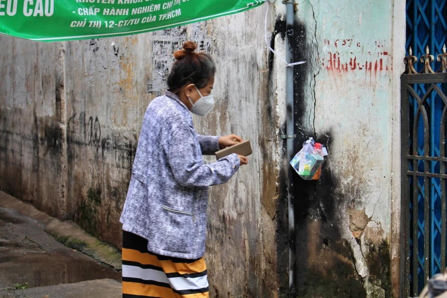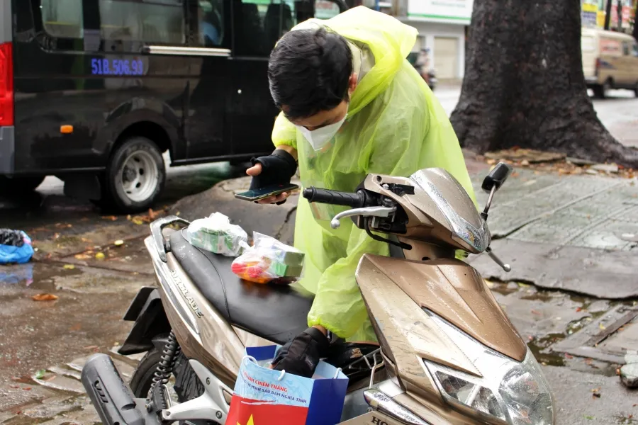 Để thuốc đến tay bà con nhanh nhất, anh Thư không kể mưa nắng, khu phong tỏa hay hẻm nhỏ. Cứ đến trước địa chỉ ghi trên từng túi thuốc, anh gọi điện thoại cho người nhận, rồi đặt thuốc ở vị trí dễ quan sát.