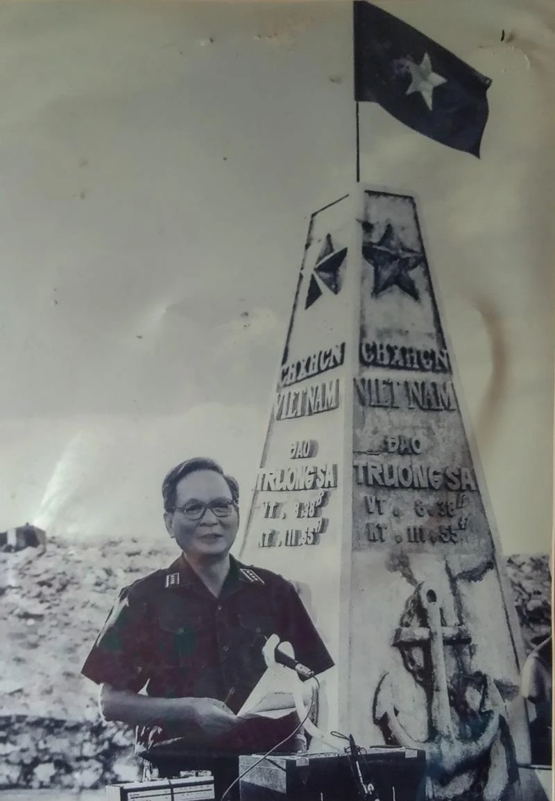 Đại tướng Lê Đức Anh tại đảo Trường Sa lớn (quần đảo Trường Sa) ngày 7-5-1988 dịp kỷ niệm 33 năm ngày thành lập Hải quân nhân dân Việt Nam.