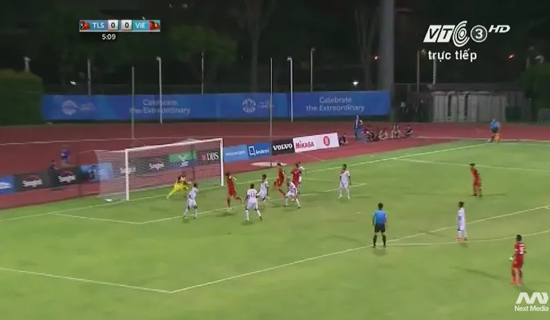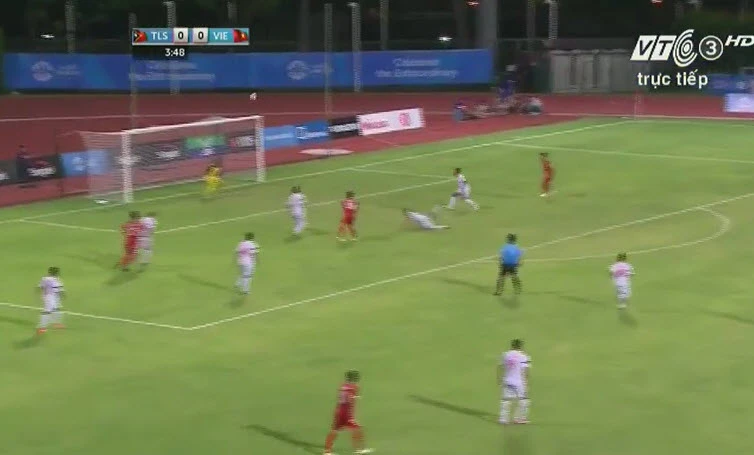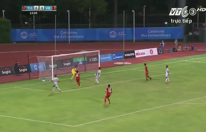 Vàoooooooooo. Phút 56, U23 Việt Nam có pha tấn công rất tốc độ, bóng đường chuyền ra cánh phải cho Ngọc Hải rất thoáng, Ngọc Hải thực hiện đường tạt vào nhưng bất ngờ đường bóng lại bay thẳng vào lưới trước sự sững sờ của các cầu thủ U23 Đông Timor. 3-0 cho U23 Việt Nam.