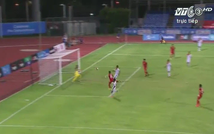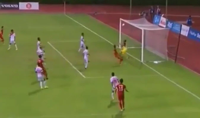 Vàooooooo. Phút 12, nhận đường tạt bóng rất chuẩn của Ngọc Hải bên cánh phải, Phi Sơn đánh đầu lái bóng vào góc xa mở tỉ số 1-0 cho U23 Việt Nam.