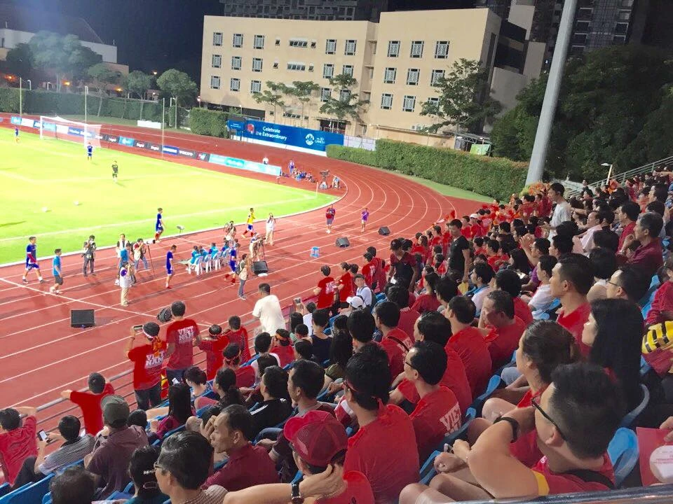 Khoảng 500 CĐV Việt Nam có mặt trên khán đài cổ vũ cho U23 Việt Nam. Ảnh: CÔNG TUẤN