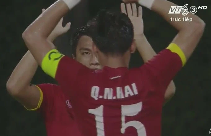 Đội trưởng Quế Ngọc Hải đã có một bàn thắng khá may mắn.