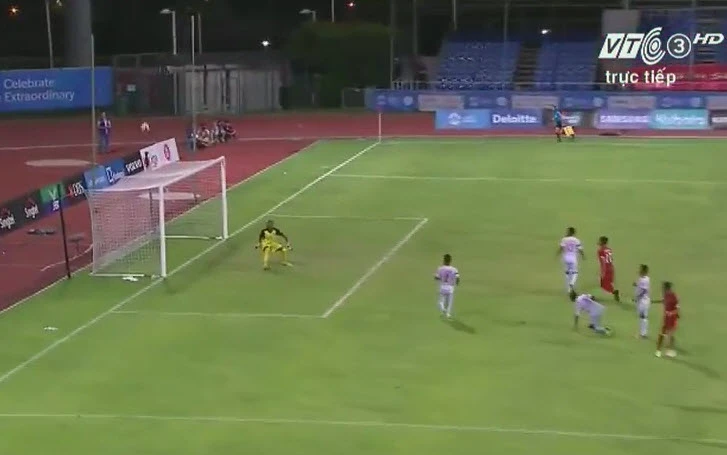 Phút 22, Phi Sơn chuyền cho Ngọc Thắng, sau một pha ngoặc bóng loại bỏ hậu vệ đối phương, Ngọc Thắng tung cú sút kỹ thuật bóng chạm xà ngang ra ngoài.