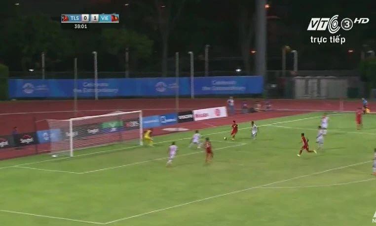 Phút 38, Phi Sơn có pha qua người kỹ thuật rồi sộc thẳng vào vòng cấm nhưng đường chuyền cuối cùng của Phi Sơn lại bị hậu vệ Đông Timor bắt bài.