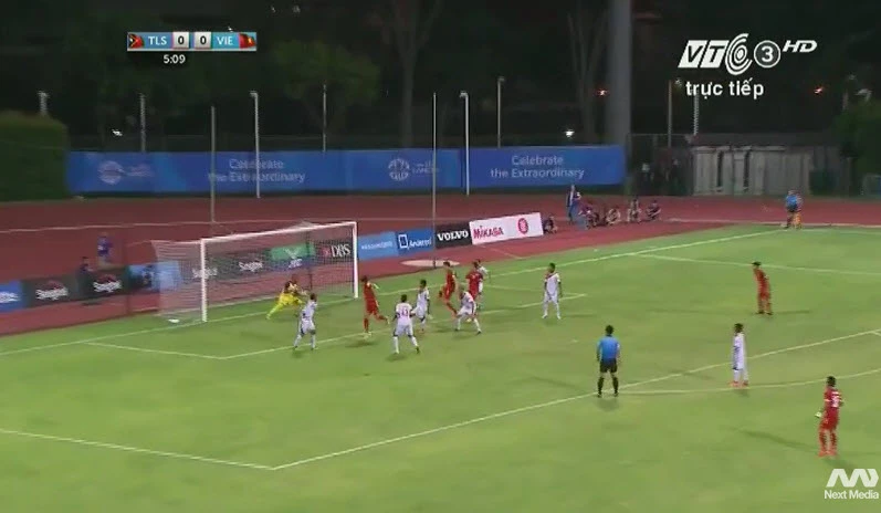 Phút 45, Hồng Quân có bóng rất trống trải sát vòng 5m50 nhưng thay vì dứt điểm anh lại ngoặc bóng để hậu vệ Đông Timor kịp cản phá