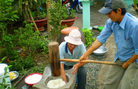 Ở miền quê yên tĩnh, người ta ngủ khi gà lên chuồng và cũng thức giấc khi gà gáy canh tư. Nhà nào muốn quết bánh thường phải vần công với những gia đình khác trong xóm. Có vậy mới vui, công việc lại nhẹ nhàng mà tình làng nghĩa xóm thêm thắm thiết.