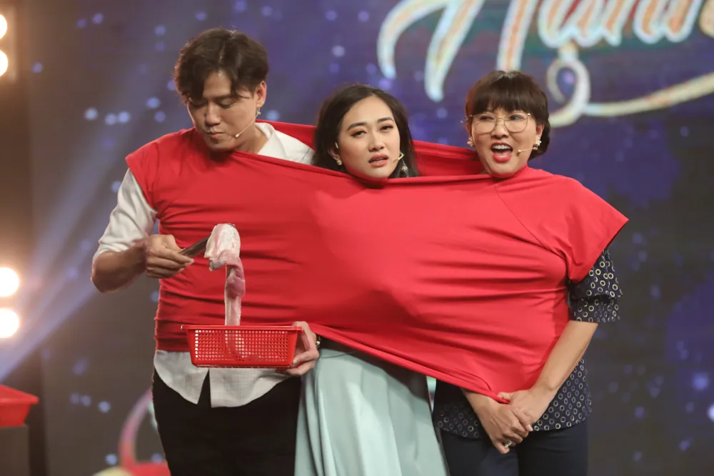 Khách mời tham gia thử thách từ chương trình. Ảnh: SEN VÀNG