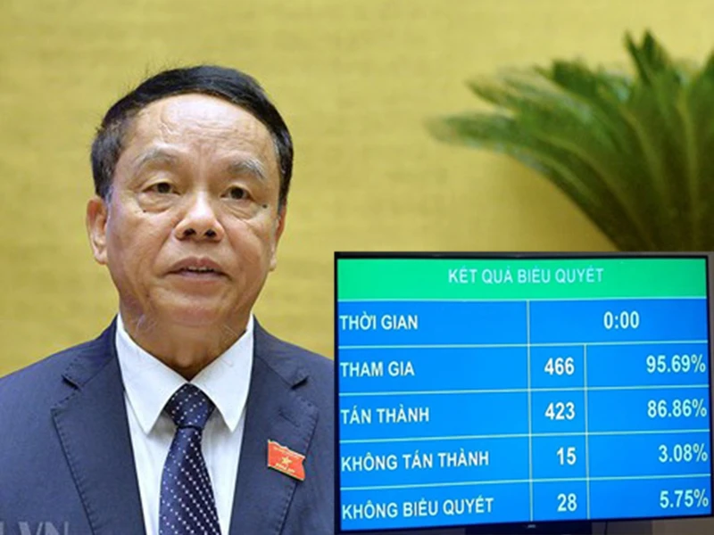 Chủ nhiệm Ủy ban Quốc phòng và An ninh Võ Trọng Việt và kết quả Quốc hội biểu quyết thông qua Luật An ninh mạng. Ảnh: quochoi.vn