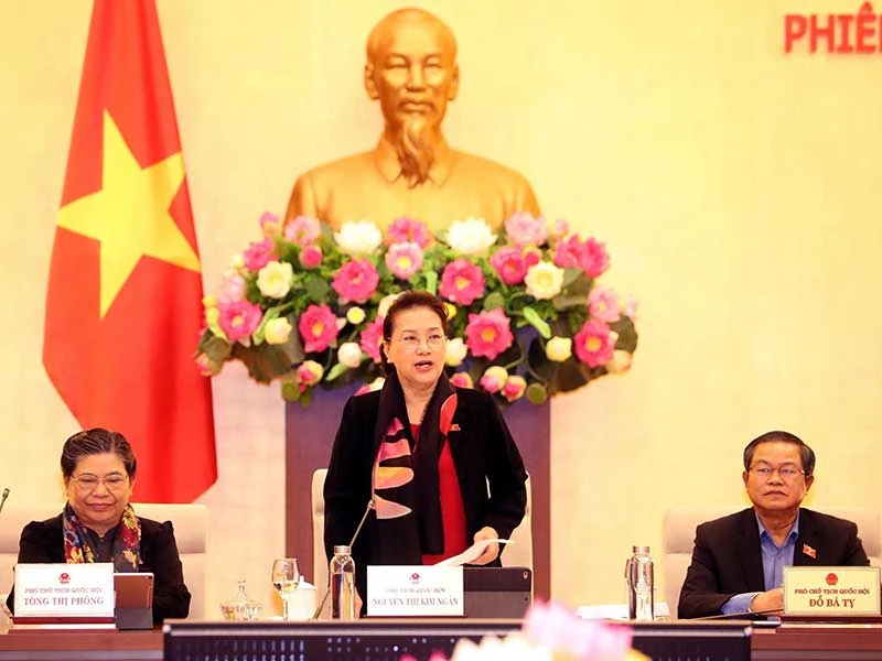 Chủ tịch QH Nguyễn Thị Kim Ngân tại buổi họp sáng 18-12 của Ủy ban Thường vụ QH. Ảnh: TTXVN