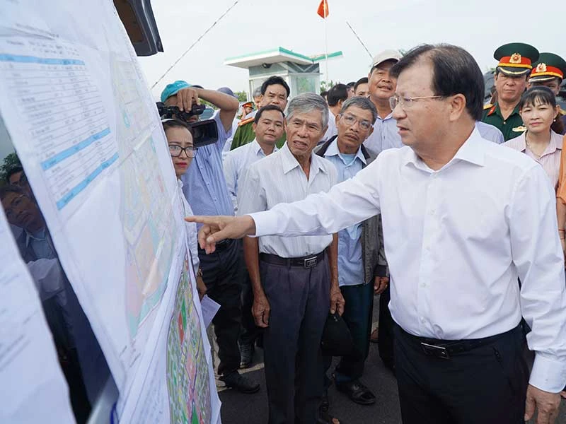 Phó Thủ tướng Chính phủ Trịnh Đình Dũng kiểm tra tại khu vực xây dựng khu tái định cư phục vụ dự án sân bay Long Thành. Ảnh: TTXVN