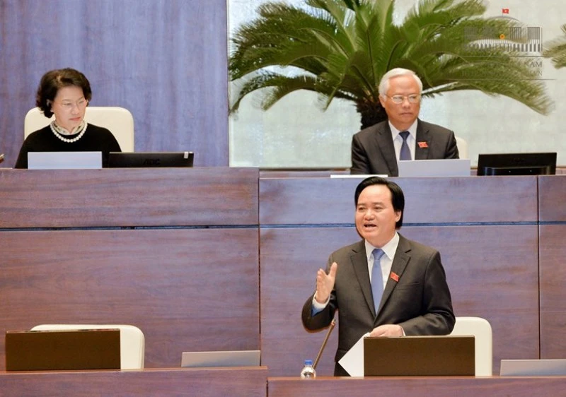 Bộ trưởng Phùng Xuân Nhạ: Đưa môn học GDCD vào thi tốt nghiệp sẽ giảm bạo lực học đường. Ảnh: QH