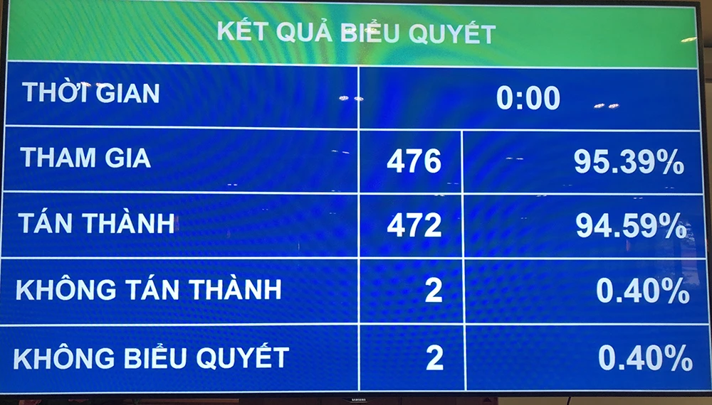 Sau đó, Quốc hội đã biểu quyết thông qua Nghị quyết phê chuẩn việc bổ nhiệm Thẩm phán TAND tối cao với 472/476 đại biểu tham gia biểu quyết tán thành, chiếm 94,59% tổng số ĐBQH.