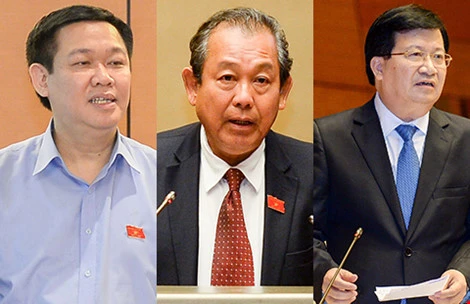 Tân Phó Thủ tướng Chính phủ (từ trái qua): Ông Vương Đình Huệ, ông Trương Hòa Bình, ông Trịnh Đình Dũng.