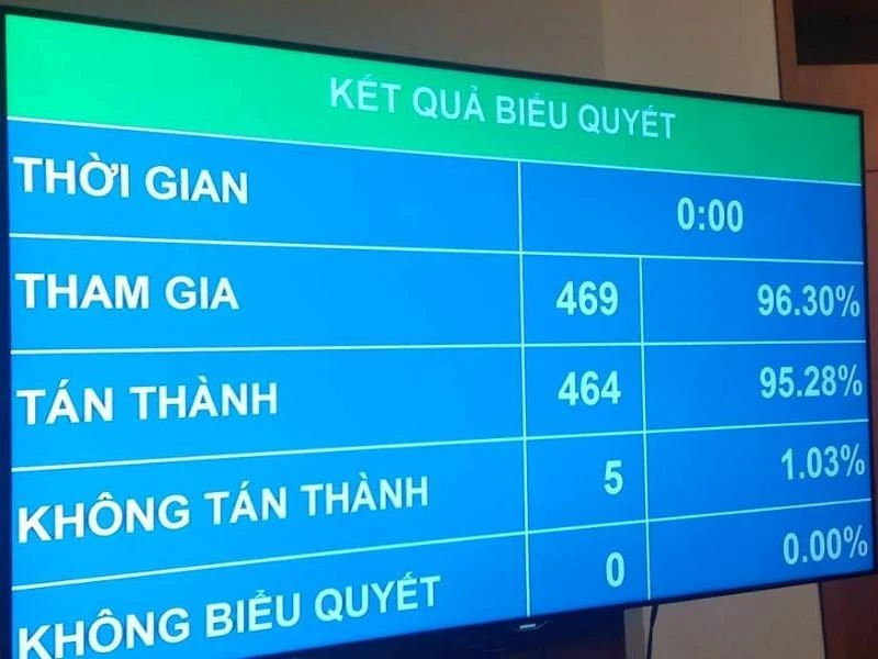 Cụ thể, có 469 đại biểu tham gia (chiếm 96,30%), với 464 đại biểu tán thành (chiếm 95,28%) và có 5 đại biểu không tán thành (1,03%).