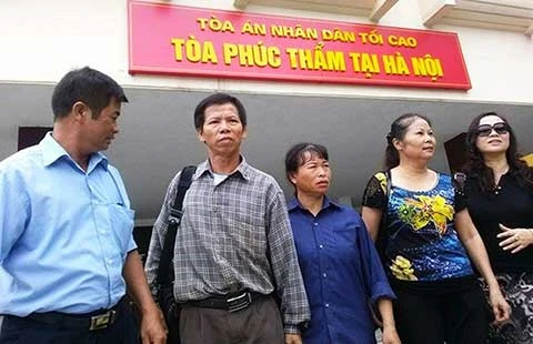 Đoàn giám sát oan sai của Quốc hội kiến nghị các cơ quan liên quan khẩn trương giải quyết bồi thường cho ông Nguyễn Thanh Chấn (Bắc Giang) trong năm 2015. Trong ảnh: Ông Nguyễn Thanh Chấn (thứ hai từ trái qua) đã gặp TAND Tối cao để được hướng dẫn thủ tục yêu cầu bồi thường. Ảnh: CTV