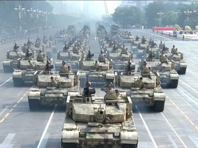 Xe tăng chiến đấu chủ lực Type 99 và xe tăng hạng nhẹ Type 15 tại buổi diễu hành. Ảnh: CNN