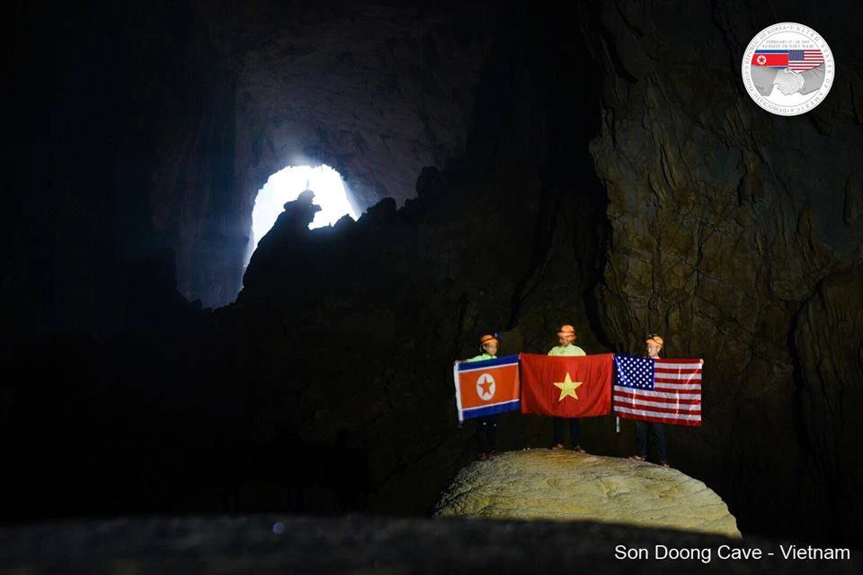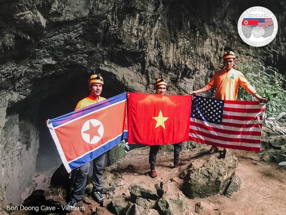 Cụ thể, để chào đón hội nghị thượng đỉnh giữa Mỹ và CHDCND Triều Tiên, trên Fanpage của Công ty du lịch Oxalis - Chua Me Đất (Quảng Bình), đơn vị tổ chức tour khám phá hang Sơn Đoòng, đã đăng rất nhiều hình ảnh những du khách Việt Nam và du khách nước ngoài cùng cầm trên tay quốc kỳ của ba nước Việt Nam - Mỹ - Triều Tiên giơ lên cạnh nhau trong một loạt các hang động đẹp nhất của Việt Nam tại Quảng Bình.