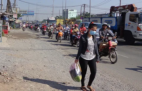Đoạn quốc lộ 1 qua Bình Chánh hẹp thường xảy ra ùn ứ. Ảnh: LƯU ĐỨC