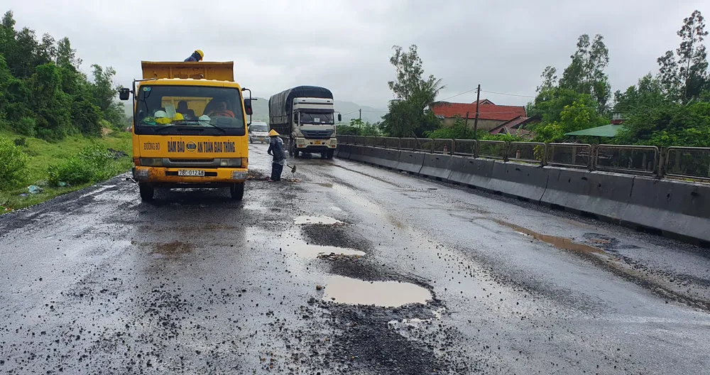 Trao đổi với PV, ông Nguyễn Phương Đông, Giám đốc Sở GTVT tỉnh Phú Yên, cho hay QL1 qua địa bàn tỉnh Phú Yên do Cục Quản lý đường bộ III quản lý, khai thác, bảo trì. Thời gian qua, do ảnh hưởng của các đợt mưa lớn đã làm phát sinh nhiều vị trí ổ gà, sình lún, hư hỏng mặt đường, gây mất an toàn giao thông trên tuyến giao thông này.
