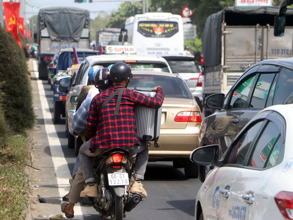 Ghi nhận trưa 6-2 (nhằm mùng 6 Tết Nguyên đán Nhâm Dần 2022) tại nút giao quốc lộ 1A với đường nối Vị Thanh - Cần Thơ (quốc lộ 61C), nhiều phương tiện từ hướng các tỉnh Hậu Giang, Sóc Trăng, Bạc Liêu, Cà Mau đi về TP.HCM, TP Cần Thơ làm ách tắc giao thông một đoạn đường dài nhiều km.