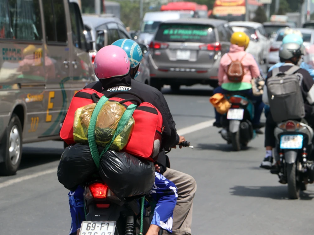 Có rất đông phương tiện chở theo nhiều đồ đạc từ hướng các tỉnh Hậu Giang, Sóc Trăng... đi TP Cần Thơ, TP.HCM.